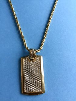 Men’s Sparkling CZ Dog Tag Pendant on 24” Rope Chain - Gold Bonded On Stainless Steel *Pickup Boca Raton$59Boca Raton, FL