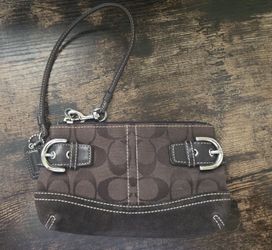 COACH Brown Signature Soho Jacquard Canvas Leather Suede Buckle Clutch Wristlet$35Simi Valley, CA
