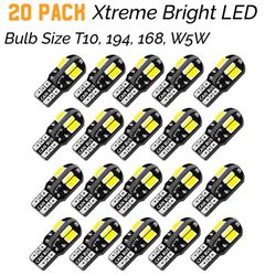 20 Pack Xtreme Bright LED Bulb Size T10, 194, 168, W5W$14Houston, TX
