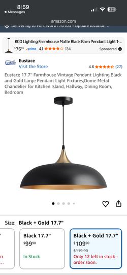 Farmhouse Vintage Pendant Light 17 in Blk/Gold Dome Metal New in box - Home decor $30Grand Prairie, TX