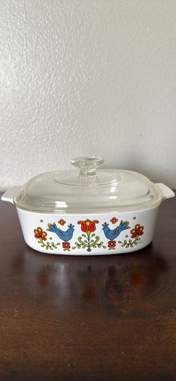 Vintage Pyrex Friendship Casserole Dish w/ Lid Blue Birds Floral Milk Glass$29Fontana, CA