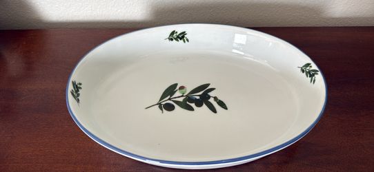 Ceramic Olive Branch Serving Bowl White Blue Rim Mediterranean Style Dish$9Fontana, CA