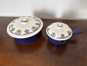 Vintage Mikasa Garden Club Casserole Dish & Sauce Pot Set Blue Floral Japan w/ Lids$30Fontana, CA