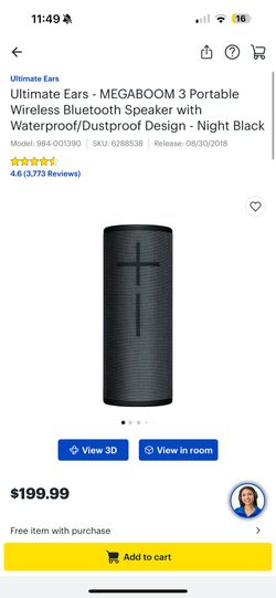 Ultimate Ears - MEGABOOM 3 Portable Wireless Bluetooth Speaker with Waterproof/Dustproof Design - Night Black$70West Palm Beach, FL