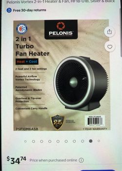 Pelonis Vortex 2-in-1 Heater & Fan HF-U1B, Silver & Black$35Middletown, NY