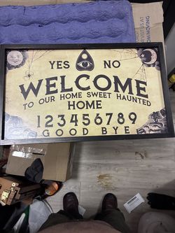 Ouija board-themed decorative sign or mat suitable for Halloween home decor. Design: Features the classic Ouija board layout with "YES", "NO", "GO$22Arvada, CO