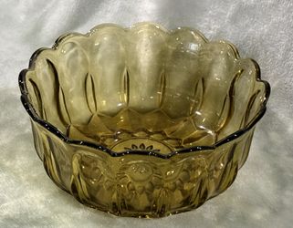 Vintage Anchor Hocking Fairfield Amber Pressed Glass 9” Scalloped Rim Bowl $20Round Rock, TX