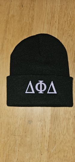 Black Delta Phi Delta beanie with white embroidery #greeklife #fraternity$5Cedar Rapids, IA