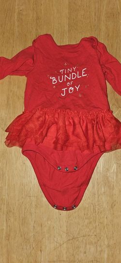 Red baby onesie with ruffles and "Bundle of Joy" text. Size: 12 months #babygirl #redhot #kids$5Cedar Rapids, IA