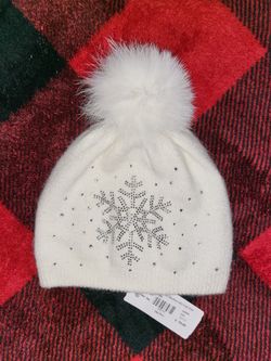 Knitted Ivory Snowflake Hat With Fox Pom $20Gilbert, AZ