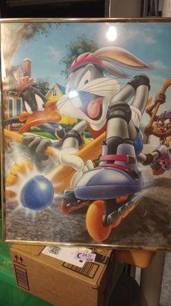 Vintage Looney tunes 1995 Roller Blade Poster Taz Bugs Bunny Daffy Duck