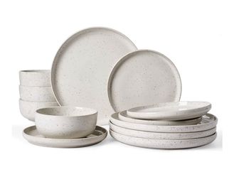 Famiware Meteor Plates and Bowls Sets for 4, 12 Pieces Dinnerware Sets, Microwave and Dishwasher Safe Dishes Set, Creamy White $50Richmond, TX