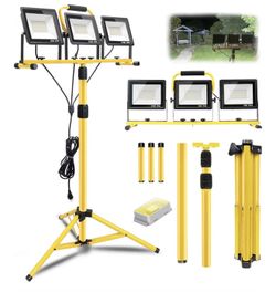 21000Lumen LED Work Lights with Stand: 3 Head Adjustable Work Light with Individual Switch - IP66 Waterproof Foldable Tripod Worklight with 16.4FT Cor$50Richmond, TX