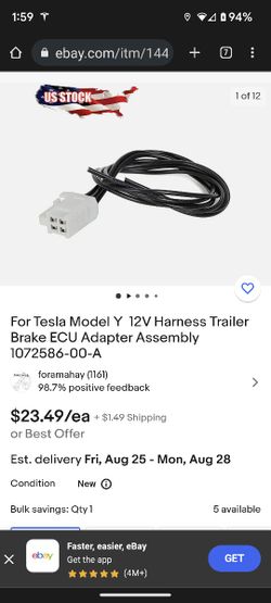 Model Y Harness Trailer Brake ECU Adapter 1072586-00-A$10Jurupa Valley, CA