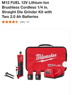 M12 FUEL 12V Lithium-Ion Brushless Cordless 1/4 in. Straight Die Grinder Kit with Two 2.0 Ah Batteries