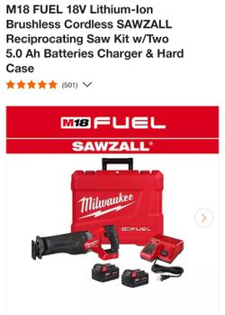 M18 FUEL 18V Lithium-Ion Brushless Cordless SAWZALL Reciprocating Saw Kit w/Two 5.0 Ah Batteries Charger & Hard Case