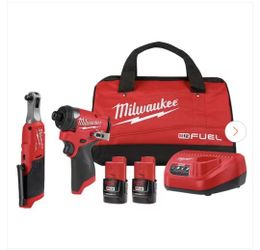 M12 FUEL 12V Lithium-Ion Cordless 3/8 in. Ratchet and 1/4 in. Impact Driver Kit (2-Tool) w/Batteries, Charger & Bag