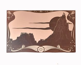 Vintage 70s Artwork Mirror Art Nouveau Style Etched, Amber 20x30” OOAK$300Henderson, NV