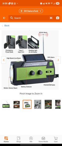 Emergency Weather Radio, 4000mAh Battery, Solar Hand Crank, FM/AM/WB/NOAA, USB, SOS Alarm, Flashlight,$18Bakersfield, CA