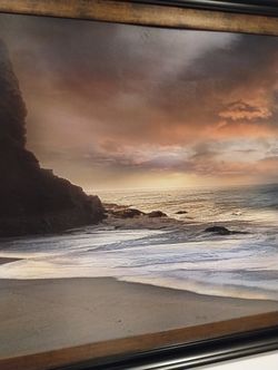 Large Framed Painting Of Sunrise Or Sunset On The Beach.$18Lake Worth, FL