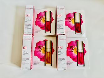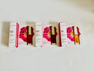 Clarins Lip Comfort Oil Set Of Three. Brand New.. 01 honey Huile de rose musquêe sweetbriar rose oil, 02 raspberry Huile de rose musquêe sweet briar r$25Sully Station, VA