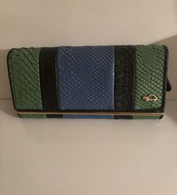 Carpisa Faux Crocodile LeatherEmbossed Pattern Wallet Tricolor. Gold color accents. A miniature pill please see last picture. Barely used. Comes from $22Sully Station, VA