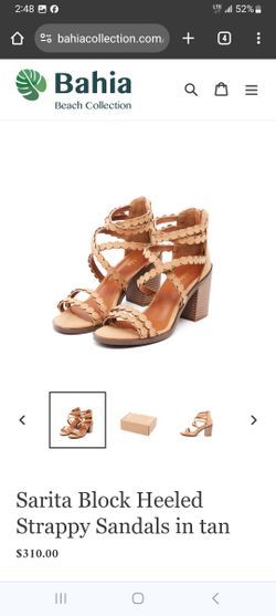 Bahia Sarita Block Heeled Strappy Sandals in tan, size 9