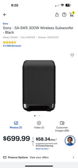 Sony SA-SW5 300W Subwoofer$450Sacramento, CA