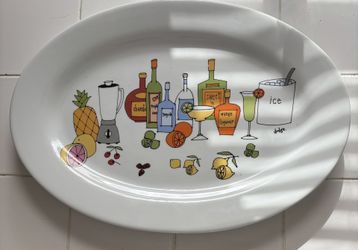 Margarita Porcelain Platter White With Multicolor Drink Design 18“ X 13“$15Union Beach, NJ