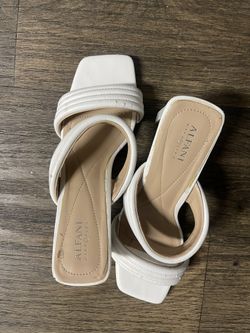 Alfani Women's Stantonn quilted square-toe block-heel slide sandals in white leather. $20Everett, WA
