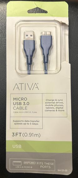 Ativa® USB 3.0 to Micro B Cable, 3 FT, Blue$12Porterville, CA
