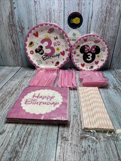 168 Pc Minnie Mouse Party 3rd Birthday Decorations Tableware.Ships In 24 Hr.29 B$15Denham Springs, LA