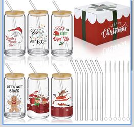 6 Pcs Christmas Funny Drinking Glasses with Bamboo Lids and Glass Straw - 16 Oz $25Denham Springs, LA