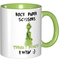 Funny Mug Rock Paper Scissors Throat Punch I Win Coffee Mug Grinch.NIB.30e$10Denham Springs, LA