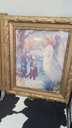 Calling The Angels- Beautiful Guardian Angel Prints In Antique Gold Wooden Frame $175Seattle, WA