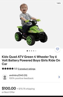 Kids Quad ATV Green 4 Wheeler Toy 6 Volt Battery Powered Boys Girls Ride On Car$50La Grange Park, IL