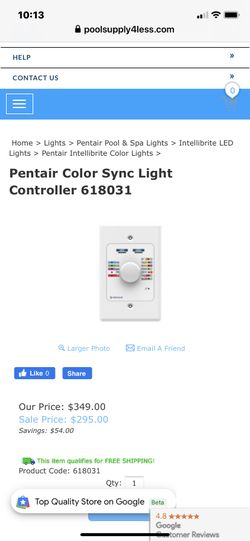 Pentair Color Sync WiFi Controller For Pentair Intellibrite And Color Lights$225Henderson, NV