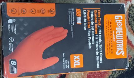 GloveWorks by Ammex Orange Nitrile Extra Thick 8mil.- Latex Free Gloves Size:XXL$20Auburn, WA