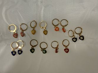 Set of 7 Heart Evil Eye Dangle Earrings$10Queens, NY