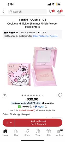 Benefit Cosmetics Tickle Shimmer Finish Powder Highlighter $30Los Angeles, CA