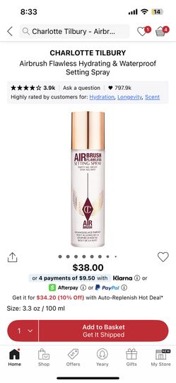 Charlotte Tilbury Airbrush Flawless Hydrating & Waterproof Setting Spray$30Los Angeles, CA