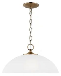 Geary 1-Light Indoor Pendant – Satin Brass finish. Features decoratively bowed arms, rectangular steel tubing, and traditional design.$60Brooklyn, NY