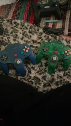 These are Nintendo 64 (N64) controllers, with one in a solid blue color and the other a transparent green$100Bethel, CT