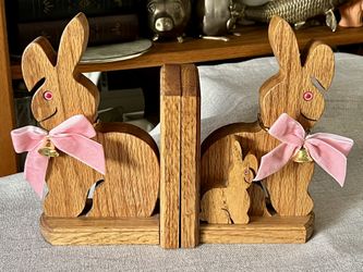 Cute Vintage Wooden Bunny Bookends with Pink Bows & Bells$25San Diego, CA
