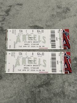 Los Angeles Angels vs Atlanta Braves 4/7/26 2 Full Ticket Stubs Soler Fight$100San Diego, CA