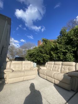 FREE DELIVERY cream Tan White Leather Couch Sofa Loveseat Recliner Reclining Set$499Detroit, MI