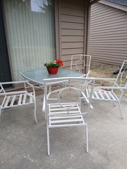 five piece patio set chairs are stackable, white metal glass, top table and$175Crystal Lake, IL