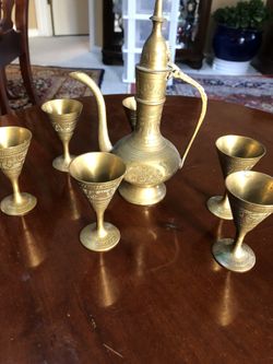 Copper Set Tea Vintage Etched And 6 Cups & Teapot Home $40Chesapeake, VA