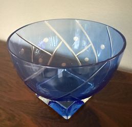 Retro FTD Cobalt Blue Etched Cut Glass Pedestal Bowl$15Seal Beach, CA