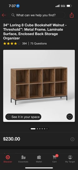 34" Loring & Cube Bookshelf Walnut - Threshold Metal Frame, Laminate Surface, Enclosed Back Storage Organizer with Fabric Storage Boxes$200Mesa, AZ